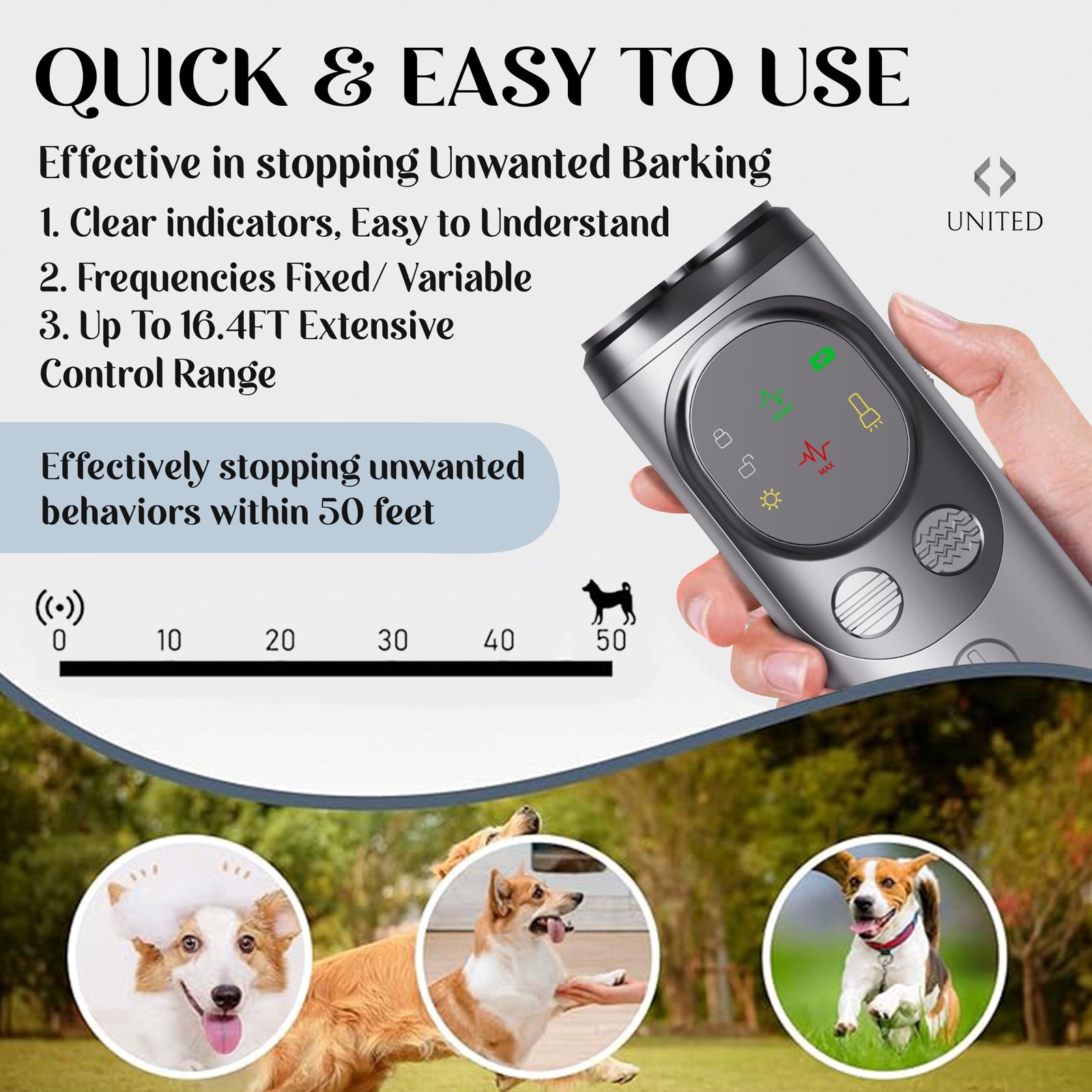 - Effective Dual-Mode Operation: Features a deterrent flashing light and ultrasonic sound frequency ranging from 15kHz to 30kHz, effectively helping to curb unwanted behaviors like barking, biting, and fighting.
